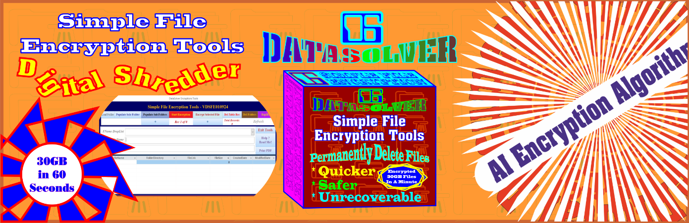 Data encryption application tools are crucial in today’s digital landscape, ensuring that sensitive information is kept secure from unauthorized access and potential breaches, due to all these compelling reasons the Data Solver developer developed this extremely effective encryption tool that must be used carefully to delete documents permanently, any data encrypted cannot be recovered, be sure of the folder selected before clicking the RED Button